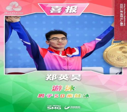 北京时间11月13日,第十五届全运会游泳项目男子50米蛙泳决赛,上海代表团再传捷报。上海小将郑英昊以26秒97夺得冠军,这也是他全运会的第一枚金牌!