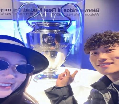 北京时间12月25日深夜,中国男足国脚、山东泰山球员谢文能在社交媒体里分享了他参观西甲豪门皇家马德里主场伯纳乌球场的圣诞休假照。